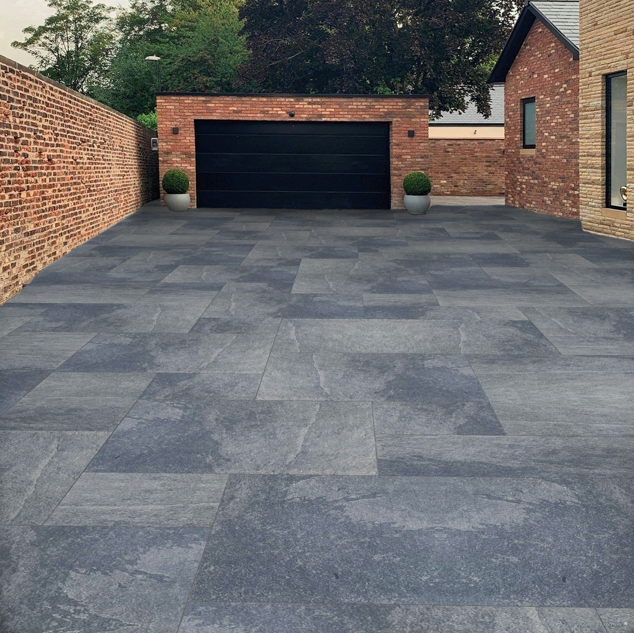The Natural Black Slate Porcelain Paving is a sleek dark grey colour with slight shades of icy blue. Dark-coloured Porcelain Paving has been increasingly popular, especially for those who prefer a more monochromatic, sleek look.