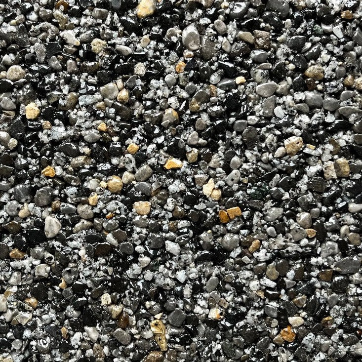 Bring a touch of sleek and modern sophistication to your outdoor space with Anthracite—a premium resin bound blend inspired by the natural beauty of black coal. This luxurious mix of Gunmetal Quartz and Galahad aggregates features a harmonious palette of deep blacks, soft greys, shiny silvers, and delicate gold flecks—capturing the refined charm and durability of the submetallic material.