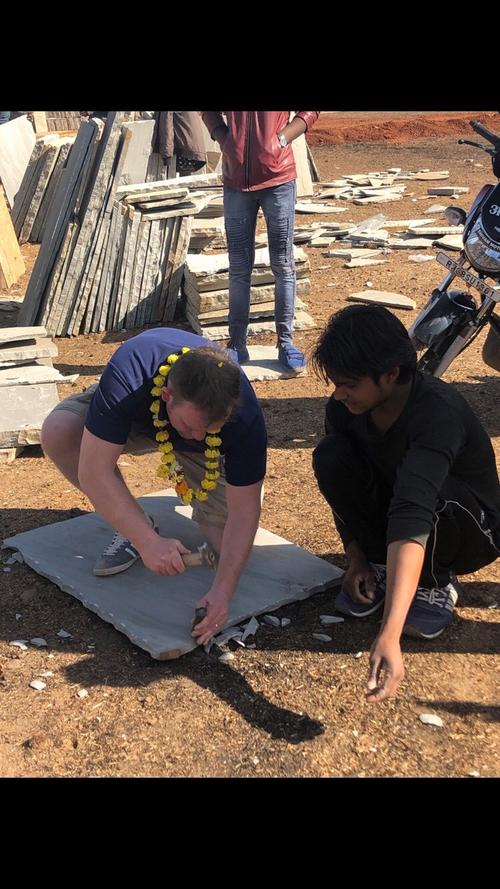 Once the paving slabs have been cut down to various sizes, they are safely packed into wooden crates, ready to be delivered via shipping containers to the UK.
