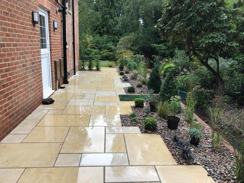 Due to the natural colour variance of Sandstone, it's best to lay the paving randomly from different crates. This will create a fully varied look across the whole patio.