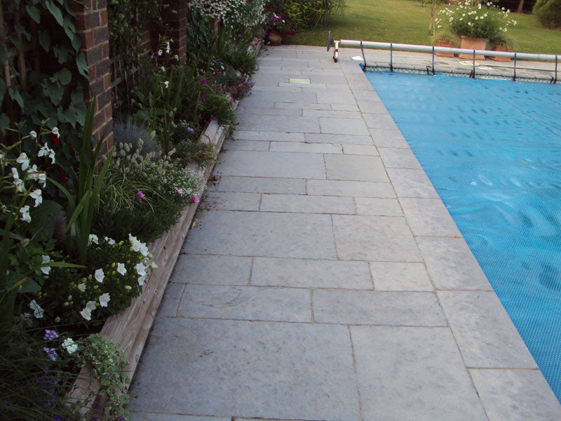 Aqua Steel Blue Limestone Paving has been widely used in numerous garden projects, particularly in back garden patios and around swimming pools, they look particularly nice poolside because the blue stones perfectly compliment the blue of the water. They are perfect in a garden wanting a cool and calm atmosphere.