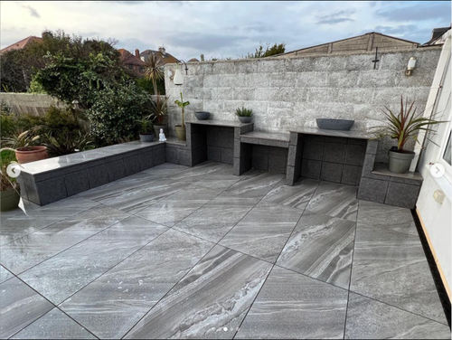 This beautiful patio is paved with our Quartzite Grey Porcelain paving. Giving off a sleek and elegant atmosphere to your garden.