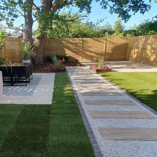 If you have a larger garden and would like a pathway to lead you through, you can make this look really smart by opting for a curved path or a straight path to divide your sections.