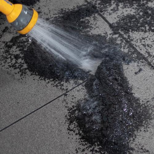 Pour the Compound: Pour the compound directly onto the wet paving surface. It's designed to be used in wet conditions, so don’t worry about adding extra water to the surface.