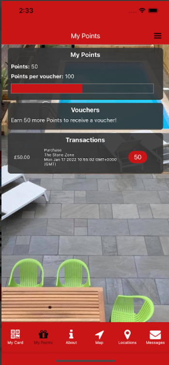 6. When in-store just show our sales advisors your QR code and once it has been scanned, you will be able to see any points gained on the app! And once you have enough points you will be able to convert them to either Amazon vouchers of Stone Zone vouchers.