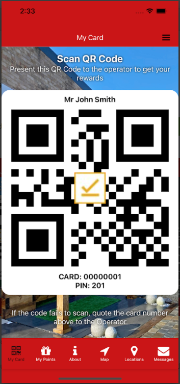 My Card – This is the personalised, scannable QR code. Underneath you will also have your card number and pin.