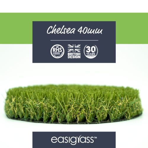 Acclaimed by RHS judges for its ultra-realistic appearance and feel, Easigrass Chelsea grass is a best-selling range in the UK and worldwide. With a 40mm pile height, this is their most natural-looking artificial grass range.