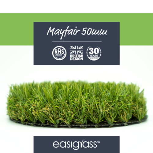 Premium, artificial grass with a generous 50mm pile height. This is the ultimate show-stopper and offers naturally-matched colour tones and long-lasting durability.