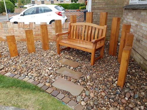 Oak sleepers are perfect if you want to give your front garden some dimension and structure. Sleepers are very versatile as they can be used to create levels, borders and steps around your garden. If you have a green thumb, sleepers are also ideal for growing flowers. As shown in the picture above, with pine sleepers paired with Scottish cobbles (or another variety of cobbles) you are able to crate lovely feature or seating areas to highlight the entrance of your house.