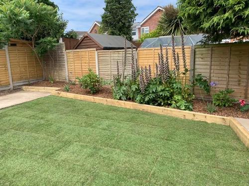 You could either install sleepers around your garden feature to divide two separate features from each other, or you could create a raised sleeper bed. Creating a raised sleeper bed is great for adding height to your garden, especially if you're then going to plant flowers or shrubs in these raised sleeper beds. This is a nice way of hiding a boring fence that wraps around your garden and adding more interest to your landscape.