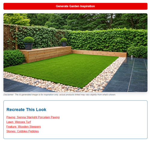 Step 6. Once you follow these steps, you will end up with a generated image of a garden with the features you have chosen. Although the image may not look exactly like your garden, it will give you a good idea of what these products look like in situ.