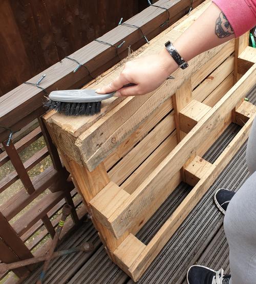Start by giving your pallet a good brush down to remove any dirt or loose debris. If needed, sand it lightly to smooth out rough edges or markings.