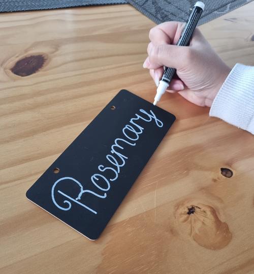 Don’t forget to label your herbs—it’s a practical touch that also adds charm to your planter! In this example, small chalkboards and a liquid chalk pen from Amazon were used to write the herb names and attach them directly to the wood. Alternatively, you could paint sections of the wood black and write or stencil the herb names in white for a bold, rustic finish.