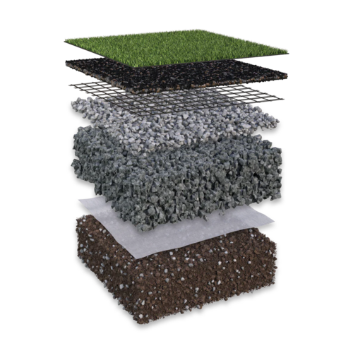 GrassMac is a cutting-edge, eco-conscious system that delivers a “Reduced Dig” base solution for Artificial Grass installations. Built with three integrated components—Vuba’s Structural Reinforcement Mesh (SRM), VubaMac Resin, and a mix of recycled rubber and aggregate—it’s specifically designed to address issues like subsidence and high maintenance that are common with traditional bases such as sand or grano dust.