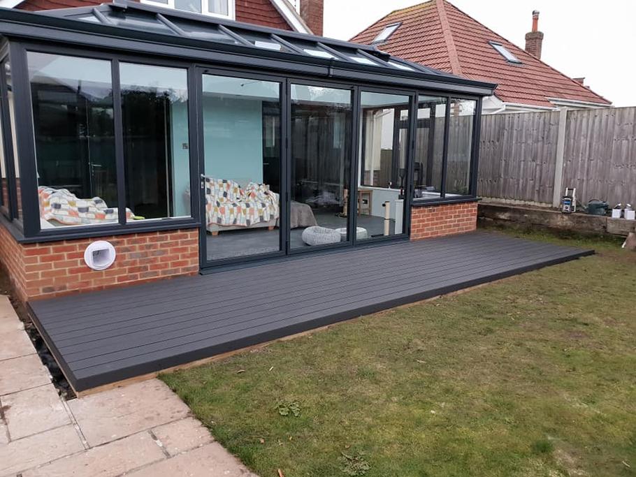 If you choose a Composite Deck or Porcelain paving, make sure you lay this at a slight slope, with a small soak-away at the end of the patio to drain any excess water away. If your patio is exposed to a lot of rain, it will become dangerous and slippery, so this is really important.