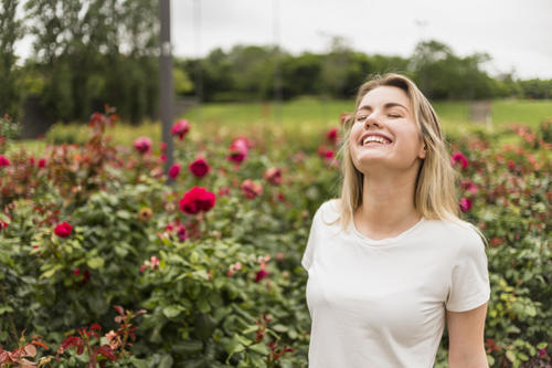 Lady smiling amongst flowers – Lady smiling in nature – <a href=”https://www.freepik.com/free-photos-vectors/flower”>Flower