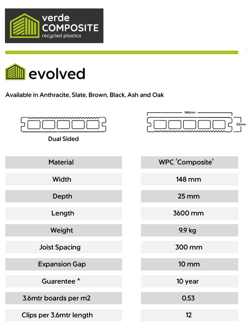Available in 6 popular colours is our Wessex Verde Composite Decking! These colours include Ash White, Slate Grey, Anthracite, Oak, Brown and Black.