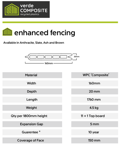Our Verde Evolved Fencing consists of 4 stunning colours: Anthracite, Slate Grey, Ash White and Brown.