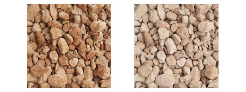 This colourful mixture of chippings consists of quartz, marble and granite stone. The blend of colours includes grey shades overlaid with rusty red, orange and buff. This would make a vibrant path or driveway and is a great hard-wearing alternative for limestone. The colours look even better when wet, so make a great addition to a water feature, but cannot be used in ponds as they aren’t fish-friendly.