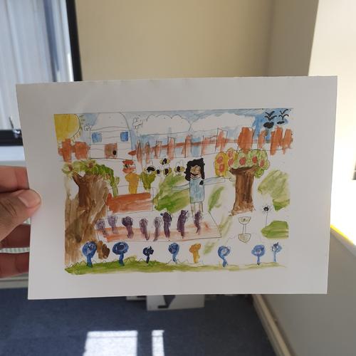 As we mentioned earlier, it was truly delightful to be able to see what the teachers and students were able to achieve with our soil and we were extremely grateful to have been gifted a whole bunch of rhubarb for us to enjoy, alongside a beautifully made card and a lovely flower pot. We look forward to seeing all the amazing fruits and veggies that children continue to grow in their allotment and to witnessing how much it expands in the future.