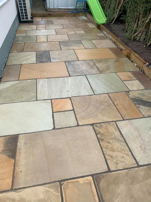 Due to the natural colour variance of Sandstone, it's best to lay the paving randomly from different crates. This will create a fully varied look across the whole patio.