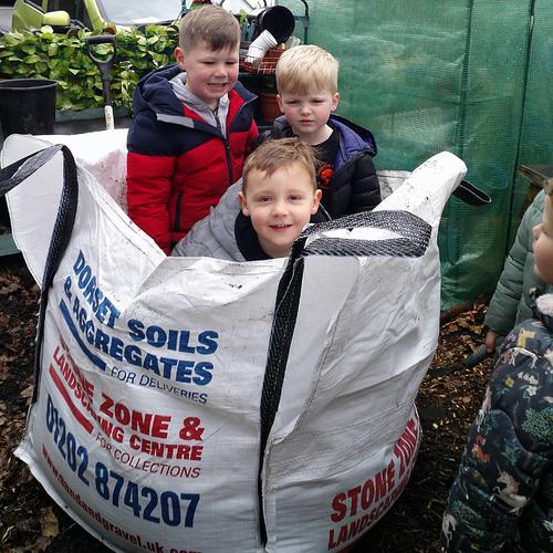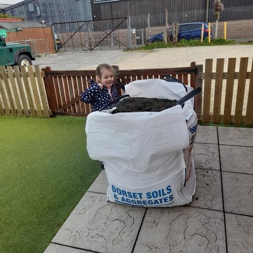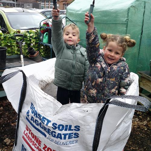 The children from Chewton Common Playgroup have been busy moving the soil into their raised beds, already utilising the soil! They also seem to be enjoying the bulk bags!
