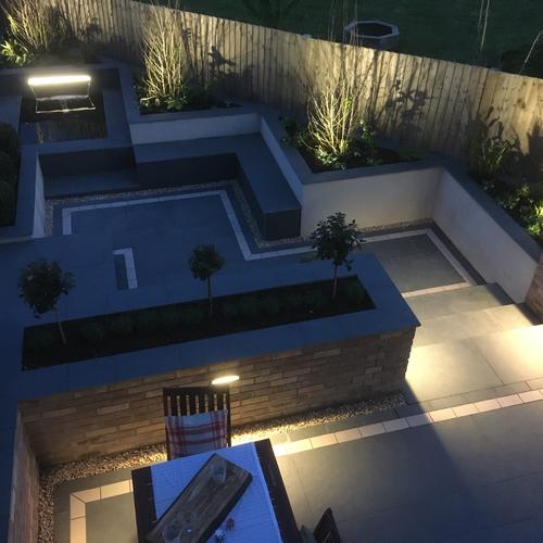 Spotlights: Highlight key features like water elements, sculptures, and trees with spotlights.