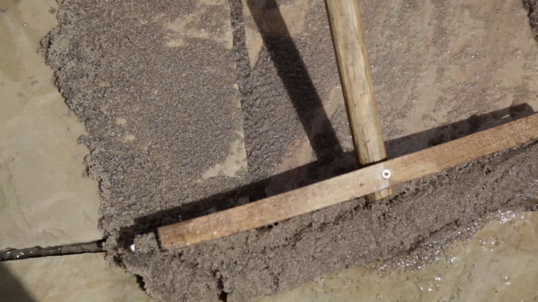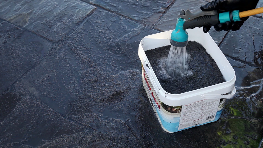 Wet the Paving: Absolutely saturate the area to be jointed with water using a hose. The paving must be wet starting & remain soaked throughout the application process – in fact, the wetter the better. Do not shortcut this process, particularly if working with absorbent or sensitive materials such as Fossil Mint Sandstone, Modac & many Limestone types.