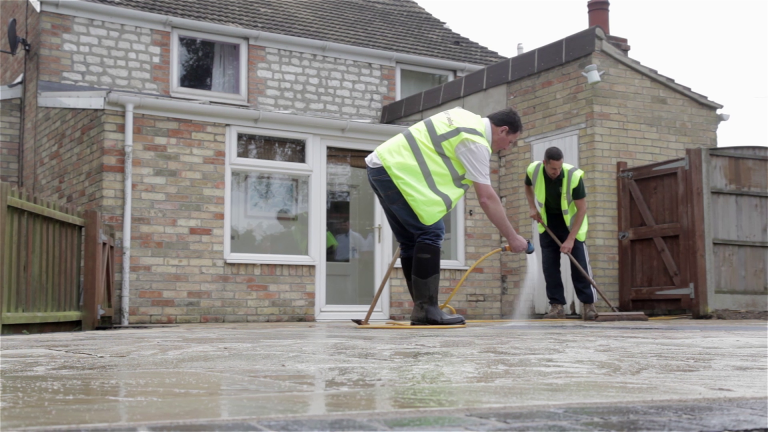 Work Quickly: It’s preferable for two operators to work together; one sweeping, the other using the hose. Using small quantities of EASYJoint, simultaneously spread & wash the compound across the surface using a jet of water & a broom/squeegee, allowing it to fall into the joints. Never allow EASYJoint to stand in piles or allow the paving to dry with any EASYJoint remaining on its surface.