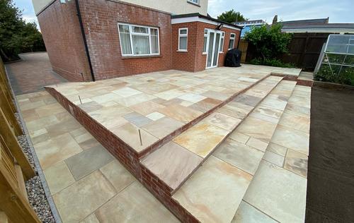 This is a stunning example of a very popular Sandstone Paving we sell. AB Landscaping have created a lovely patio and steps for a very lucky customer!