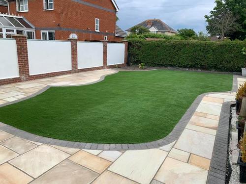 This project is a popular one with us as it beautifully demonstrates a product that naturally comes with a lot of character - which fits in well with a garden with plenty of character! Adams Landscapes have actually kept certain faetures, like the Charcoal Edging, and finished off the edges with some stunning sandstone paving, and filling in the middle with Artficial Grass.